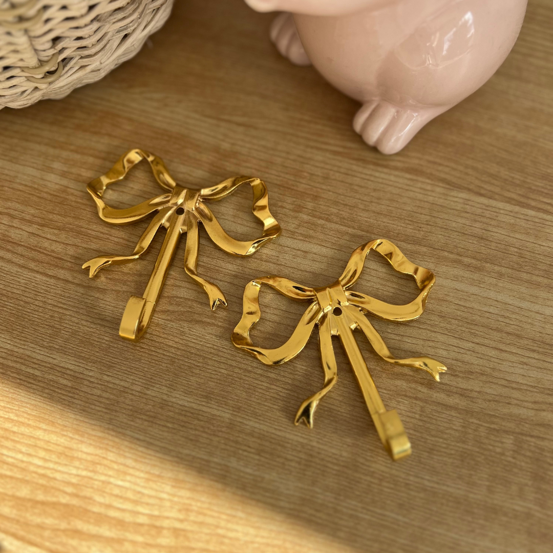Elevate your walls with a hint of sweetness. Our Gold Bow Wall Hooks are the perfect blend of functionality and femininity—finished in a soft, glossy brass and shaped like charming ribbon bows. Whether styled solo or as a pair, they bring a whimsical, vintage-inspired touch to any room.
